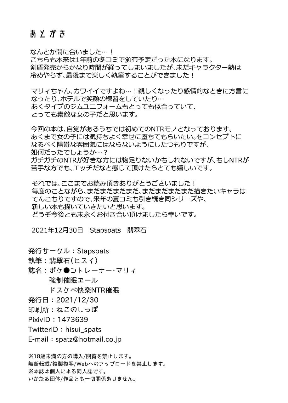 首頁>同人誌>漢化>[Stapspats (翡翠石)] ポケ●ントレーナー・マリィ 強制催眠エール (ポケットモンスター ソード・シールド) [不咕鸟汉化组] [DL版]>20