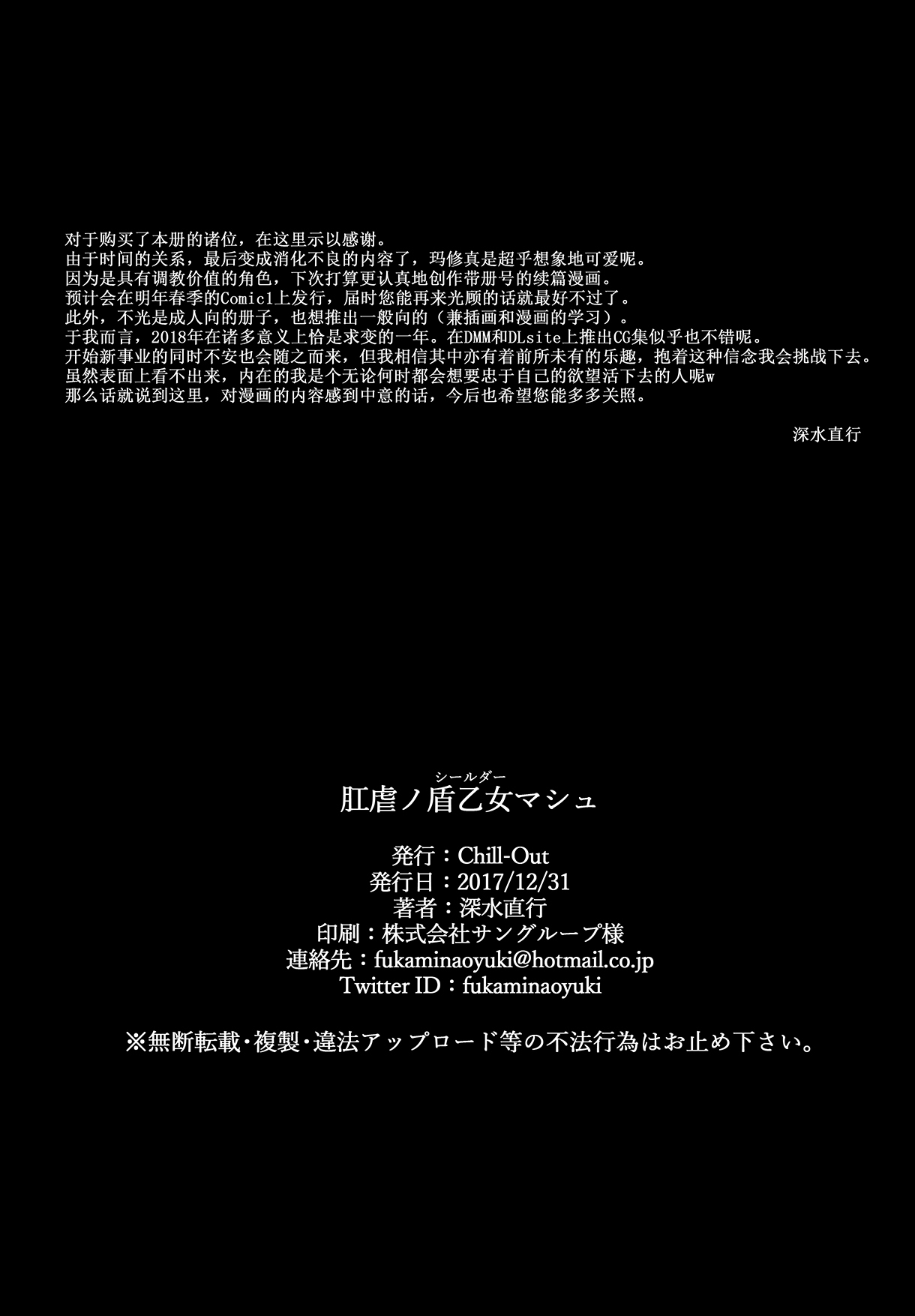 首頁>同人誌>漢化>(C93) [Chill-out (深水直行)] 肛虐ノ盾乙女マシュ (FateGrand Order)>20