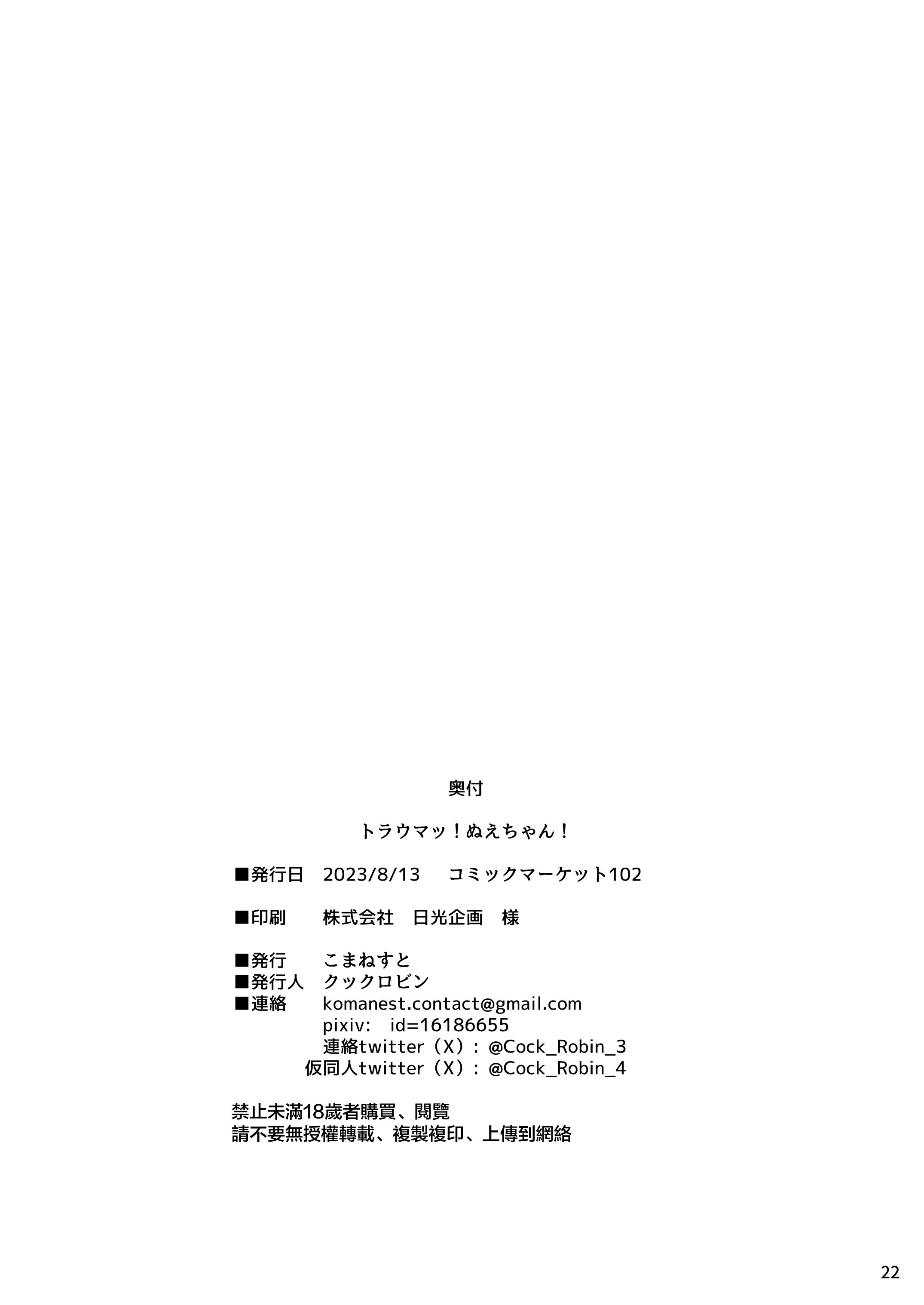 首頁>同人誌>漢化>[こまねすと (クックロビン)] トラウマッ!ぬえちゃん! (東方Project)|心理陰影!鵺醬!  [命蓮寺漢化組] [DL版]>22