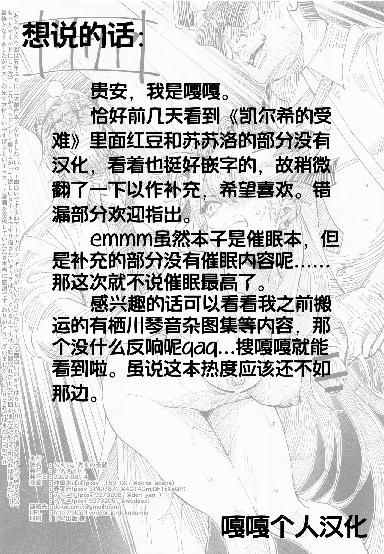 首頁>同人誌>漢化>(C100) [ドクダミ (よろず)] ケルシー先生の受難 补充画集 (アークナイツ) [嘎嘎个人汉化]>11_2629005_f7bca2f35c_00000020
