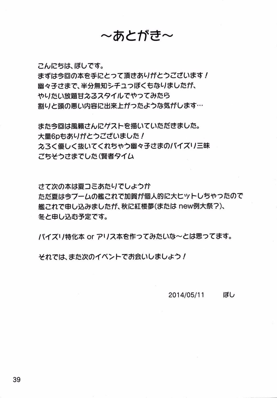 首頁>同人誌>(例大祭11) [白銀木犀 (ぽし)] おねがい幽々子さま (東方Project)>39