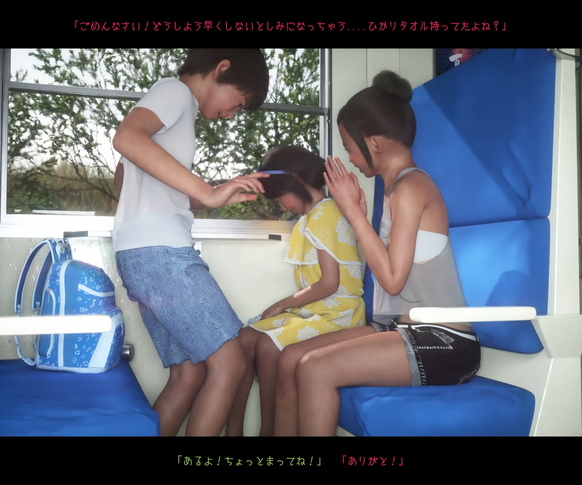 首頁>同人誌>CG畫集>[おどうぐばこ] 夏のいたずら 〜ロリなお姉ちゃんが年下ショタっ子を電車でGET!〜>009