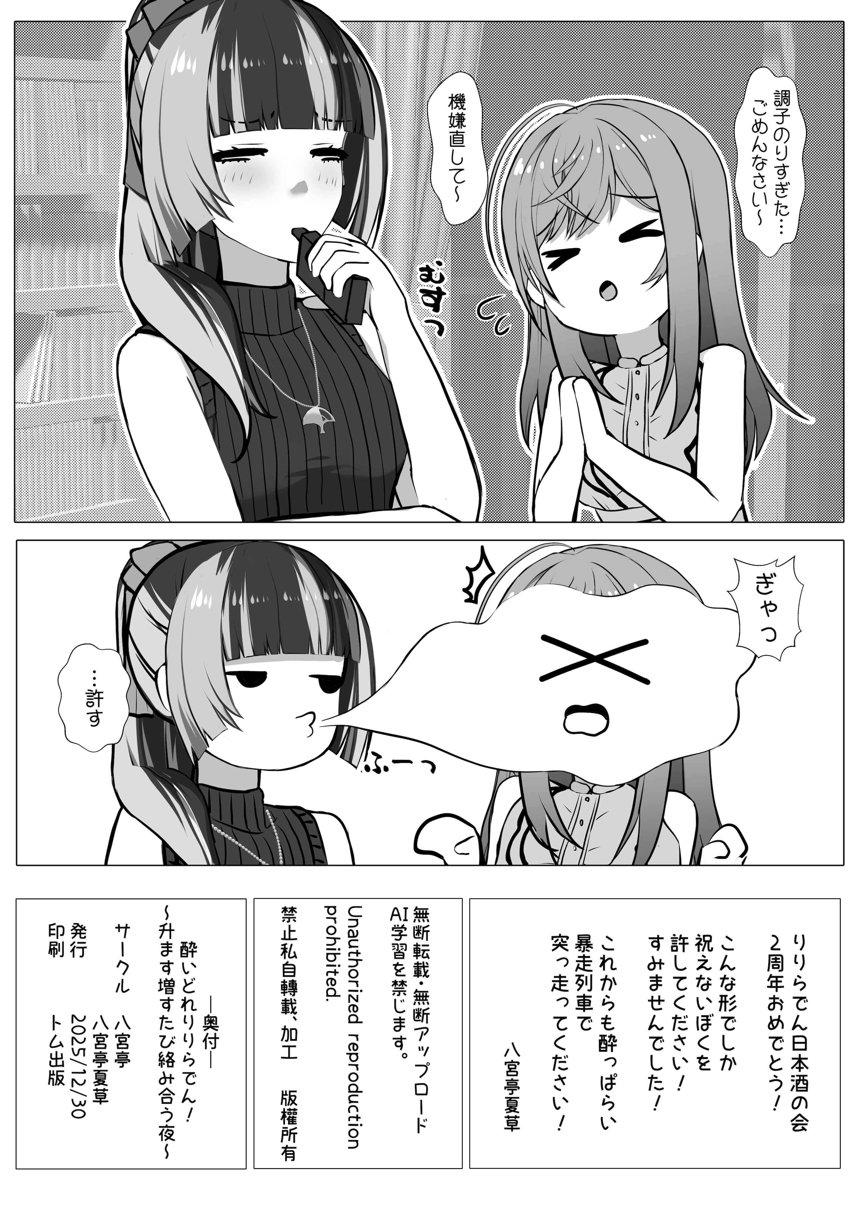 首頁>同人誌>日語>[八宮亭 (八宮)] 酔いどれりりらでん! ~升ます増すたび絡み合う夜~ (儒烏風亭らでん, 一条莉々華) [DL版]>25
