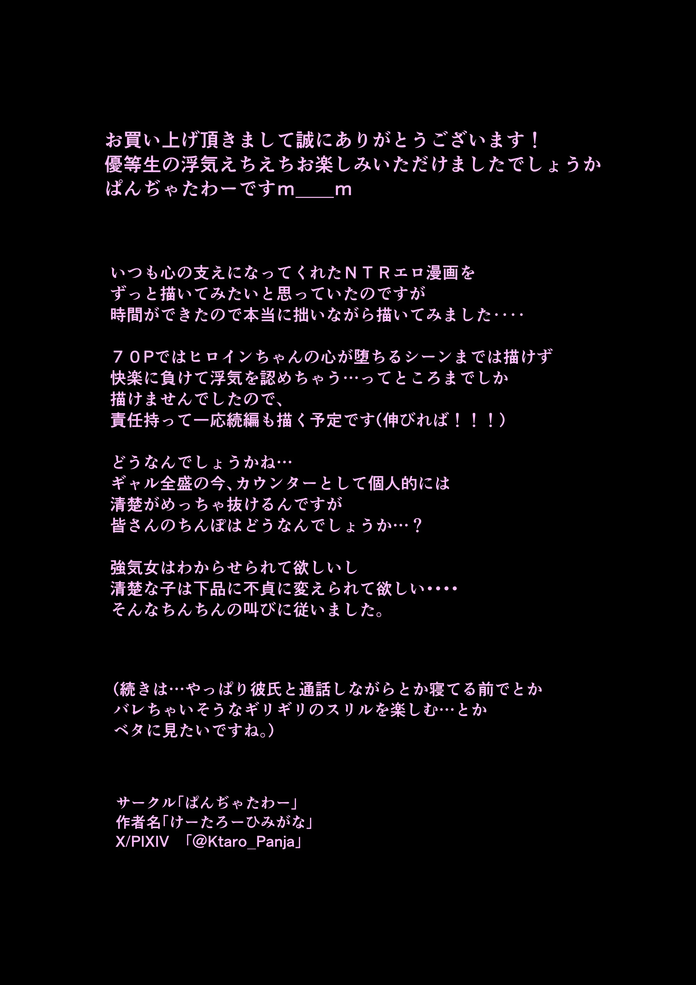 首頁>同人誌>日語>[ぱんぢゃたわー (けーたろーひみがな)] 堕ちるひとしずく〜彼氏に隠れてカッコイイデカチンに何度も無責任中出しされちゃいました〜>74_mcot